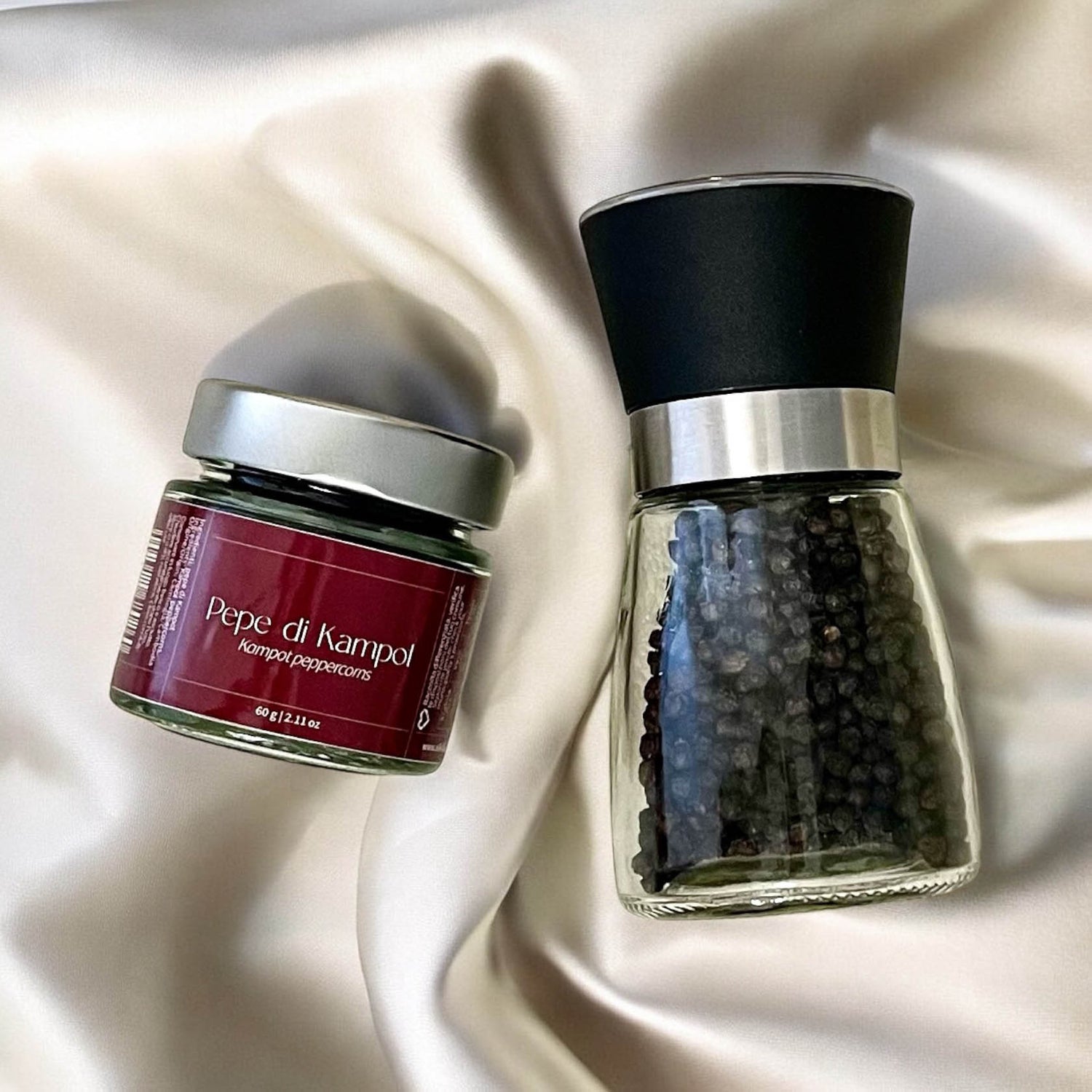 Il regalo perfetto per chi ha "buon gusto". Questo set è una scoperta: racchiude il pepe di Kampot, prezioso e aromatico (oppure anche la variante con pepe di Malabar, il celebre 'oro nero' dell’India) e si completa con un macinapepe con smerigliatrice ceramica regolabile, elegante e pratico, per trasformare ogni piatto in un’esperienza di gusto unica.