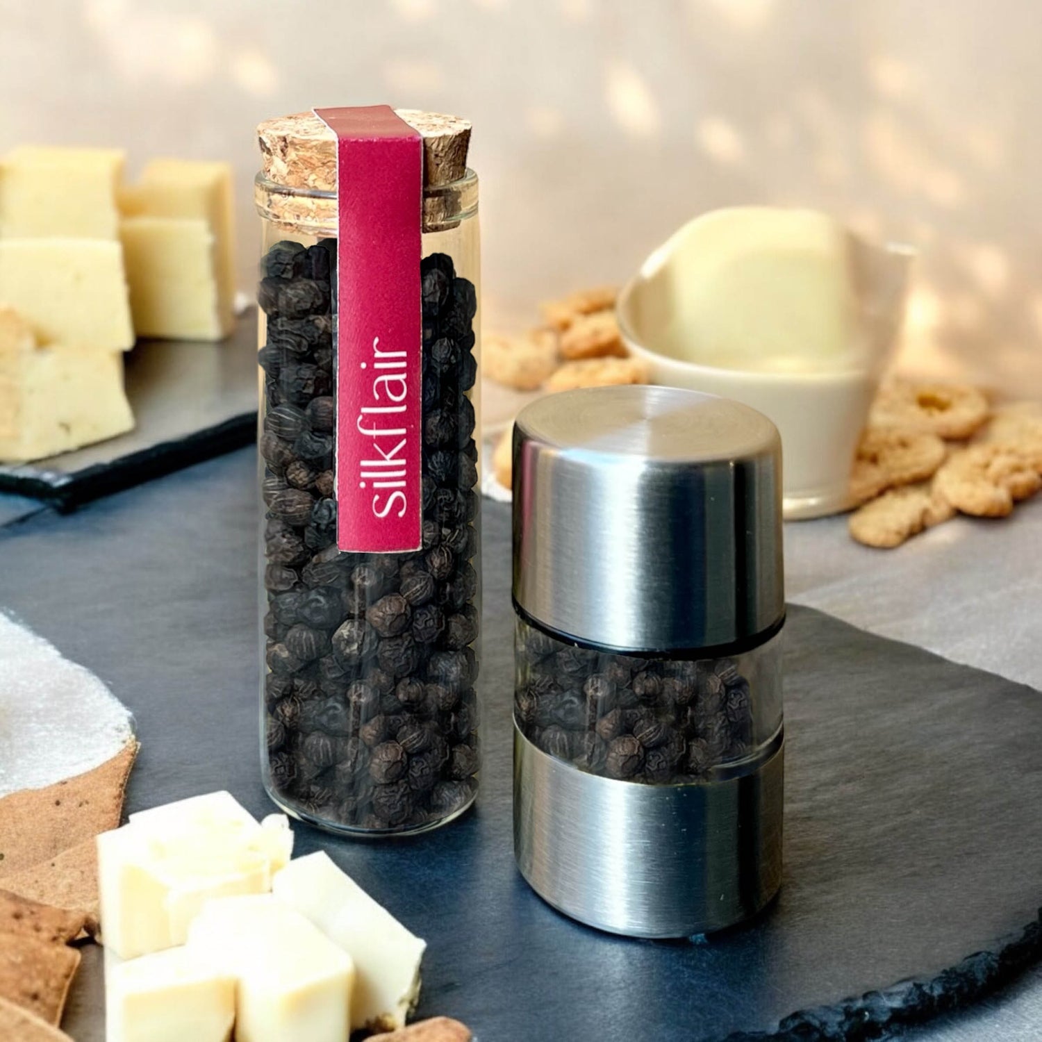 Sorprendi l’amico/a gourmet con un regalo raffinato e fuori dal comune. Il set con pepe nero di Ceylon e mini macina pepe combina l’intensità di una spezia rara e pregiata con la praticità di un accessorio dedicato. Un pensiero elegante che invita a scoprire nuovi sapori e a valorizzare ogni piatto con un tocco di originalità.
